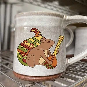 Since I decided to partake in the craft fair associated with the International Bluegrass Music Association's annual festival, I want to create some magic and history for the music lovers attending the festival. If you're attending an event that involves lots of walking, most will want to buy small pieces of art that will fit in backpacks. Mugs are at the top of my list.