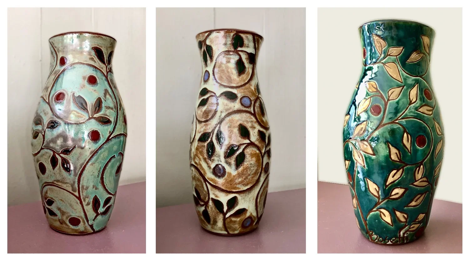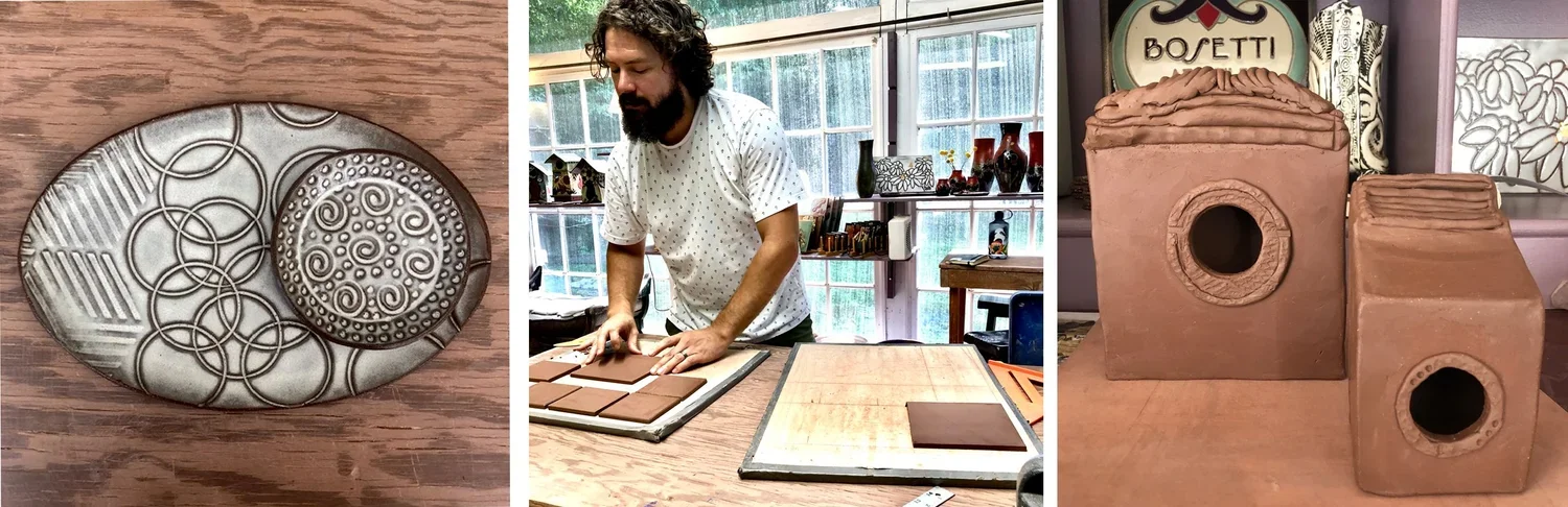 Photos from some of the studio classes I've taught over the year. These photos are from a course on textures, a tile-making class, and some birdhouses from a slab-building class.