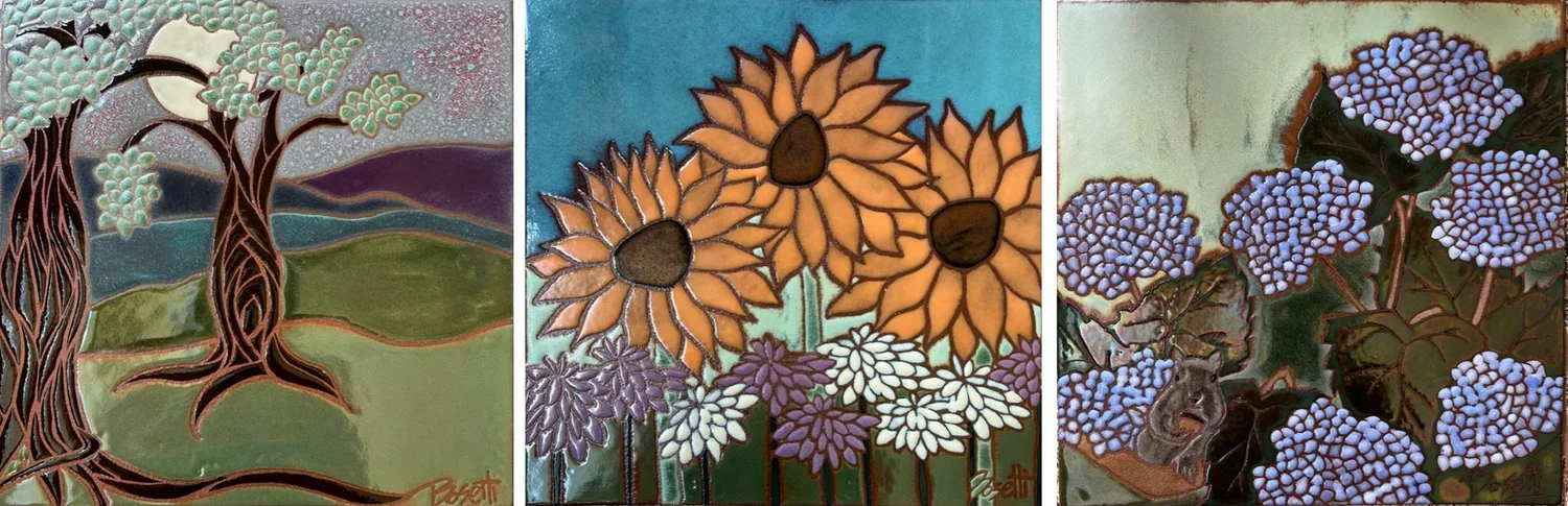 These are the fired tiles from last week. Bright, cheerful, and serene.