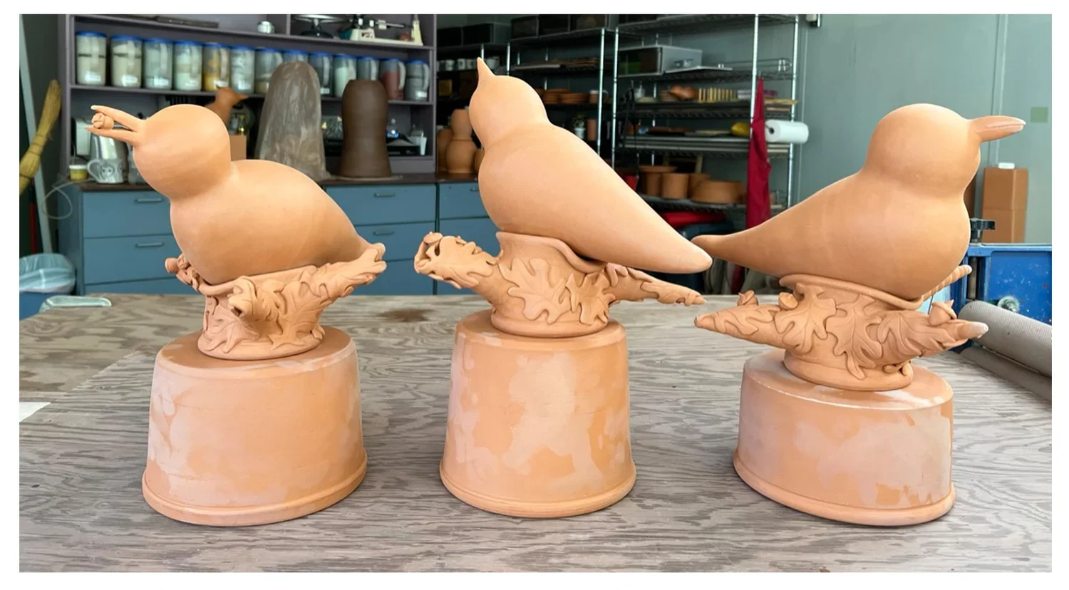 Some of the new bird sculptures will be going into the kiln shortly. I’m working out the glazing and how to pattern the bases. Which will be an optional purchase.