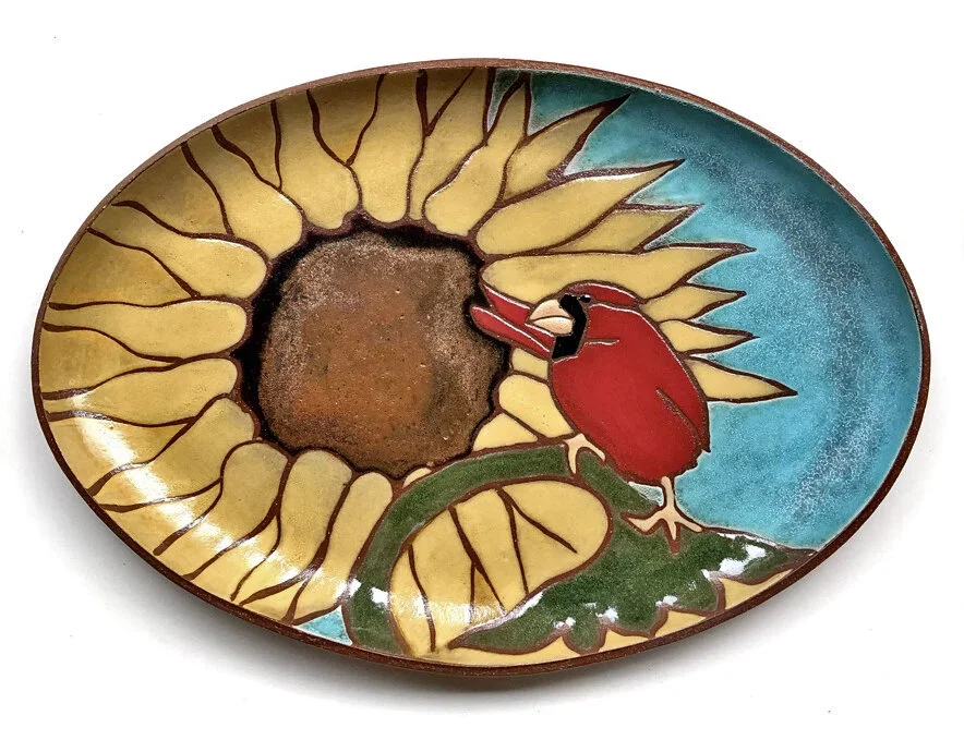 During the lockdown, we've all had a chance to reconnect with nature. Predominately birds for us city dwellers. Last June, we put a second story deck on the back of the house. It gives us a birds-eye view into the busy life that's happening in the canopies of the trees. Cardinals, robins, mockingbirds, northern flickers, and woodpeckers are the ones I see and hear. The birds and squirrels sing, chat, and work in harmony. Not all of these have made it onto the bird plates, but their charming antics are inspiring. Having breakfast by birdsong is a soft start to a day of clay work.