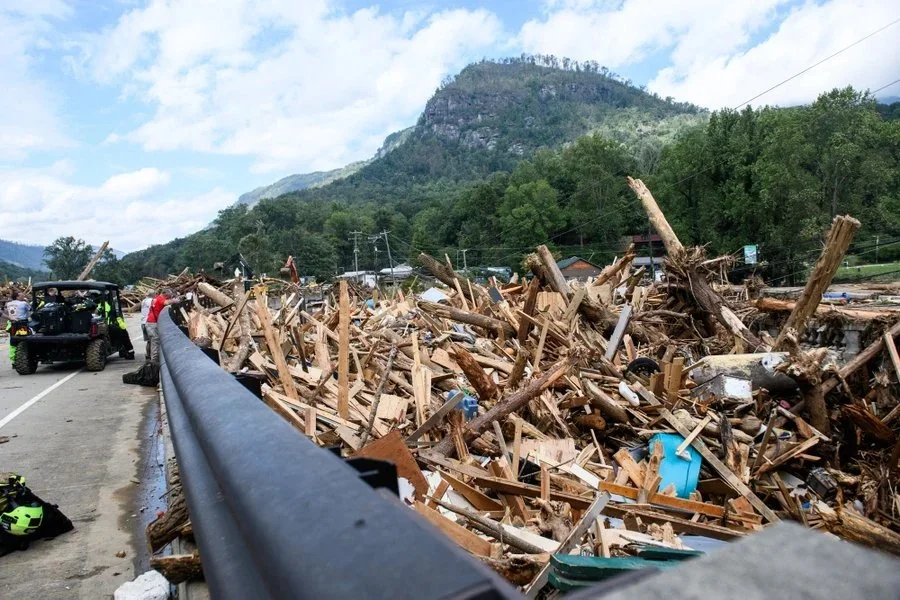 Helene's heavy rains caused record flooding and damage in Asheville, NC on September 28th, 2024. Photo Melissa Sue Gerrits/Getty
