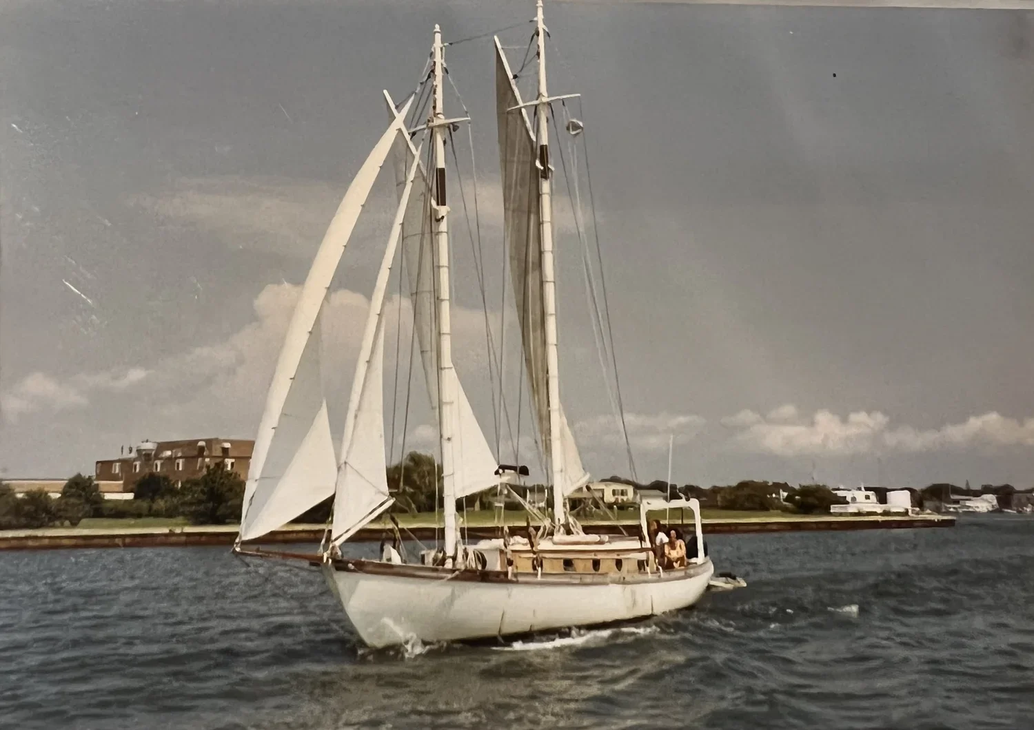 Enchantress is the boat my then-husband and I sailed into Beaufort, NC. She's a full-keel schooner, 60 feet long, with a 5-foot draft. She’s a cork.