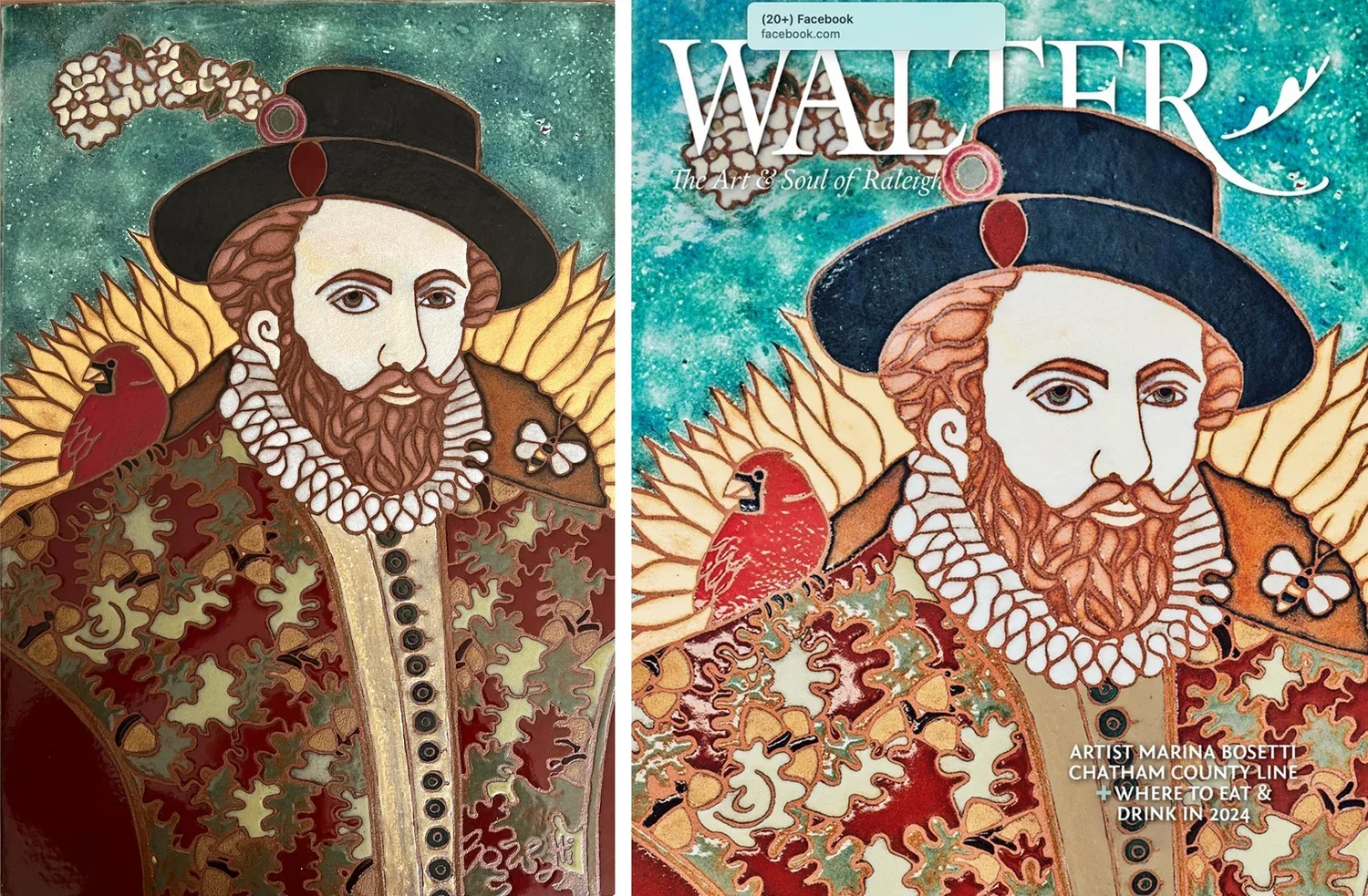 My original tile portrait of Sir Walter and January’s Walter cover. The photo link will take you to the on line magazine, my article is on page 80.