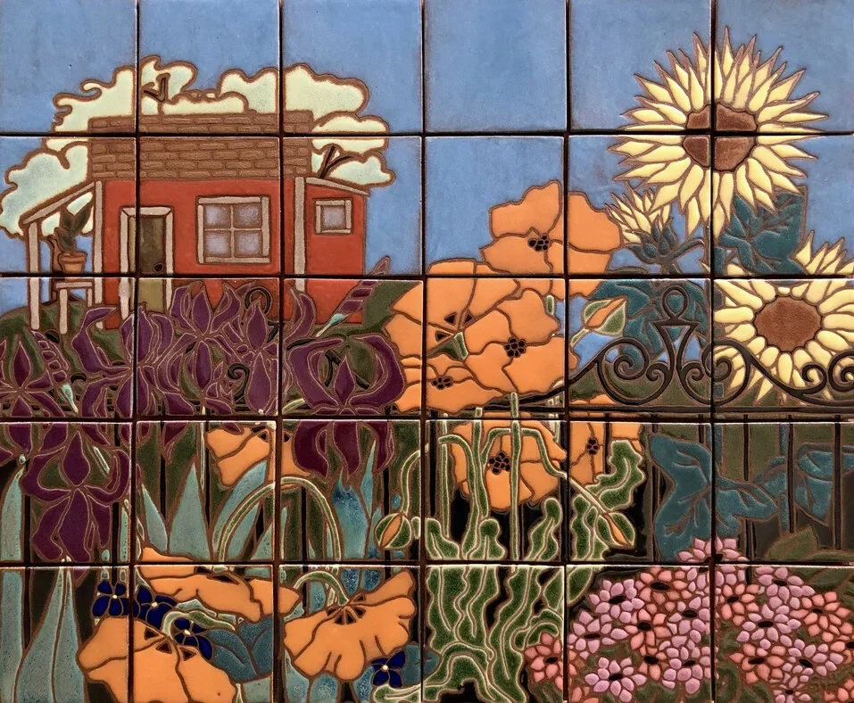 Start by talking with each other about what you want, then while you browse the magazines for images and phrases, you can help each other find what you're looking for. If you've always wanted one of my backsplashes, be sure to take an image off the website, print it, and paste it in. Once you have a stack of images, you can start gluing them down. I am ridiculously tight and desire perfection in everything except how clean my car and studio are. Here is an image of the one I created this past week.