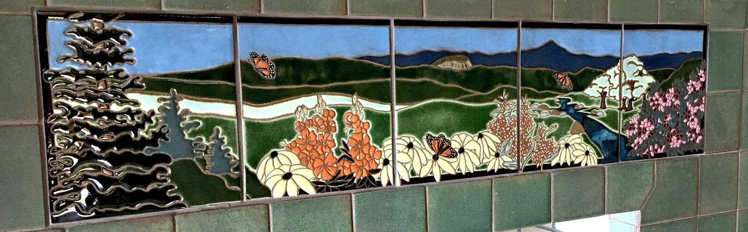There are many reasons to visit the NC city of Bevard. There are waterfalls, the Pisgah National Forest, mountain biking, and when done having fun outdoors, there are the breweries. I was there to see my work from 2020 firsthand. A couple hired me to make tiles for three rooms in the craftsmen's house they were building there. It was the beginning of the pandemic, and with everything shutting down, it became hard to find materials which slowed the process down. They're in their new home now, and it was good to see them relaxed and happy in a personal and meaningful space.