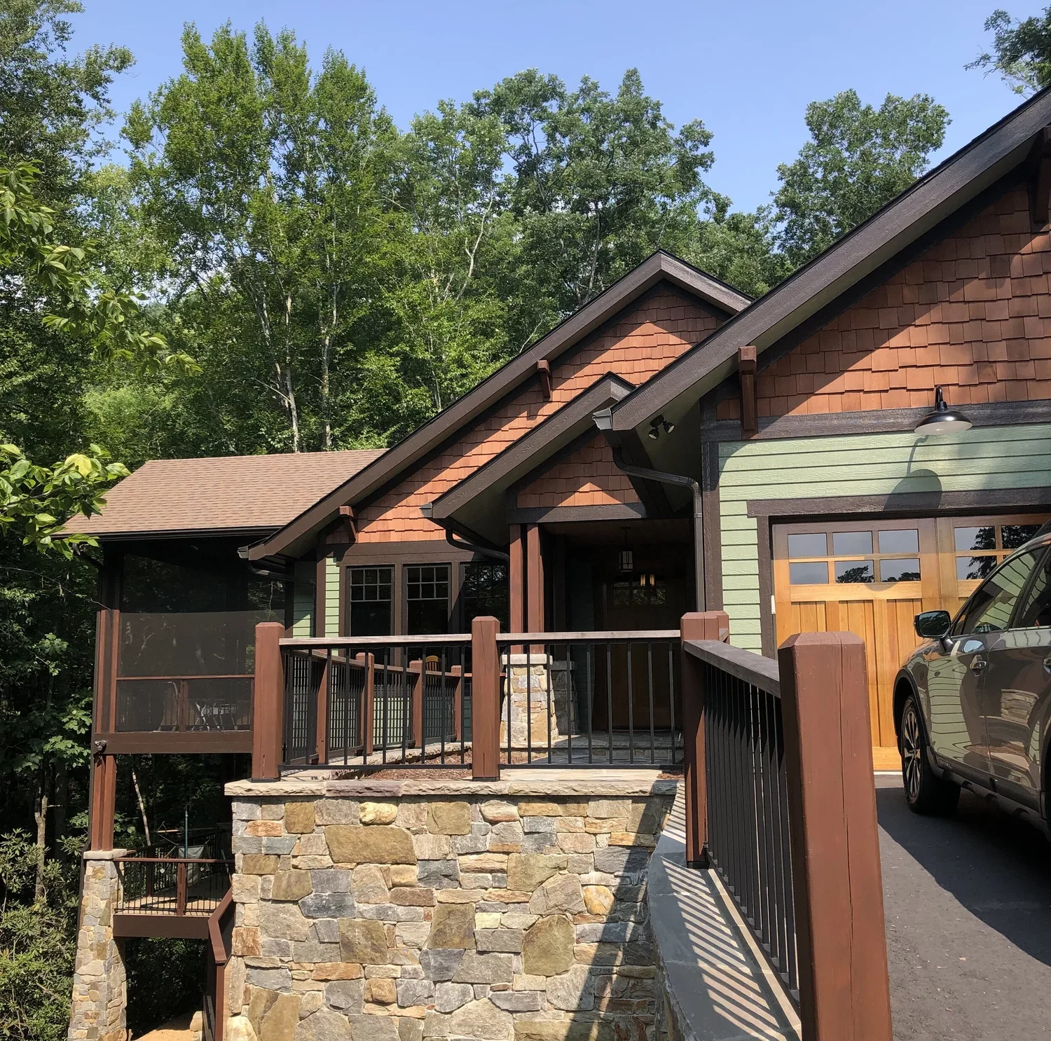 As you pull up to the house, two themes work in harmony with each other, craftsmen styling and the natural surrounding of Pisgah National Forest. Both tile and artwork depict their love of our mountains and their great appreciation of the mountain flora's unique beauty. They hike frequently.