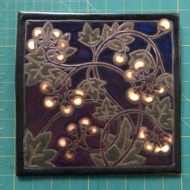 Tile made with a throwing clay body. It’s not flat nor is it square.