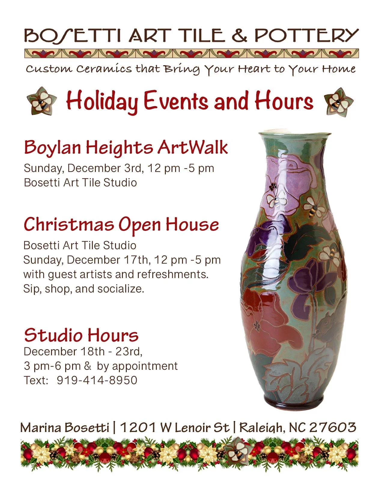 Yesterday, as my husband and I drove the uncongested highways leading to NC's beautiful coast, I connected to all I'm grateful for this Thanksgiving. Family, friends, studio mates, a quick recovery from knee surgery, good health, the incredible neighborhoods I live and work in, and a lifelong passion for clay that has sustained and satisfied my creative needs for over forty years. I'm grateful for living in this time of indoor plumbing, automated electric kilns, grocery stores, online recipes, and mangos in January. Our modern world offers us so much. Many of us live like kings and queens. It's a fantastic time to be a human. It's also a stormy time in a scary world. I keep reminding myself to look to the light by giving others the benefit of the doubt and being kind. I don't always succeed, but every failure is a new commitment to the goal.