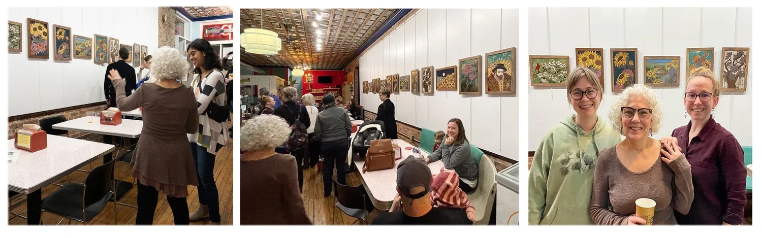 Speaking of spending quality time together. Thank you to all who came out for my opening last week. It was a wonderful mix of friends, past customers, and people new to my work. This time, I remembered asking my friend and professional photographer, Cheryl Gottshall, to take candid shots with her phone so I could share the Rebus Works event with you.