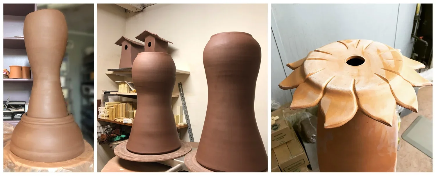 For the Rex Hospital Project, I am finishing the three pedestals topped with a birdhouse. Although I haven't started to glaze them, I've been working on them in my mind and have a clear vision of how I want them to look. The base will be flowers and maybe some animals, the pedestal will be a tree, then a carved flower platform finished with a birdhouse that'll repeat the flowers from the bottom.