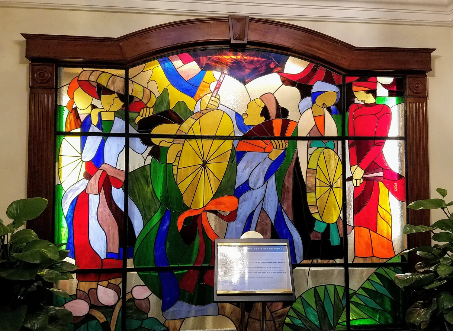 This stained glass masterpiece greets you as you enter the Skybar Restaurant in the Hotel Majestic, overlooking the Saigon River.