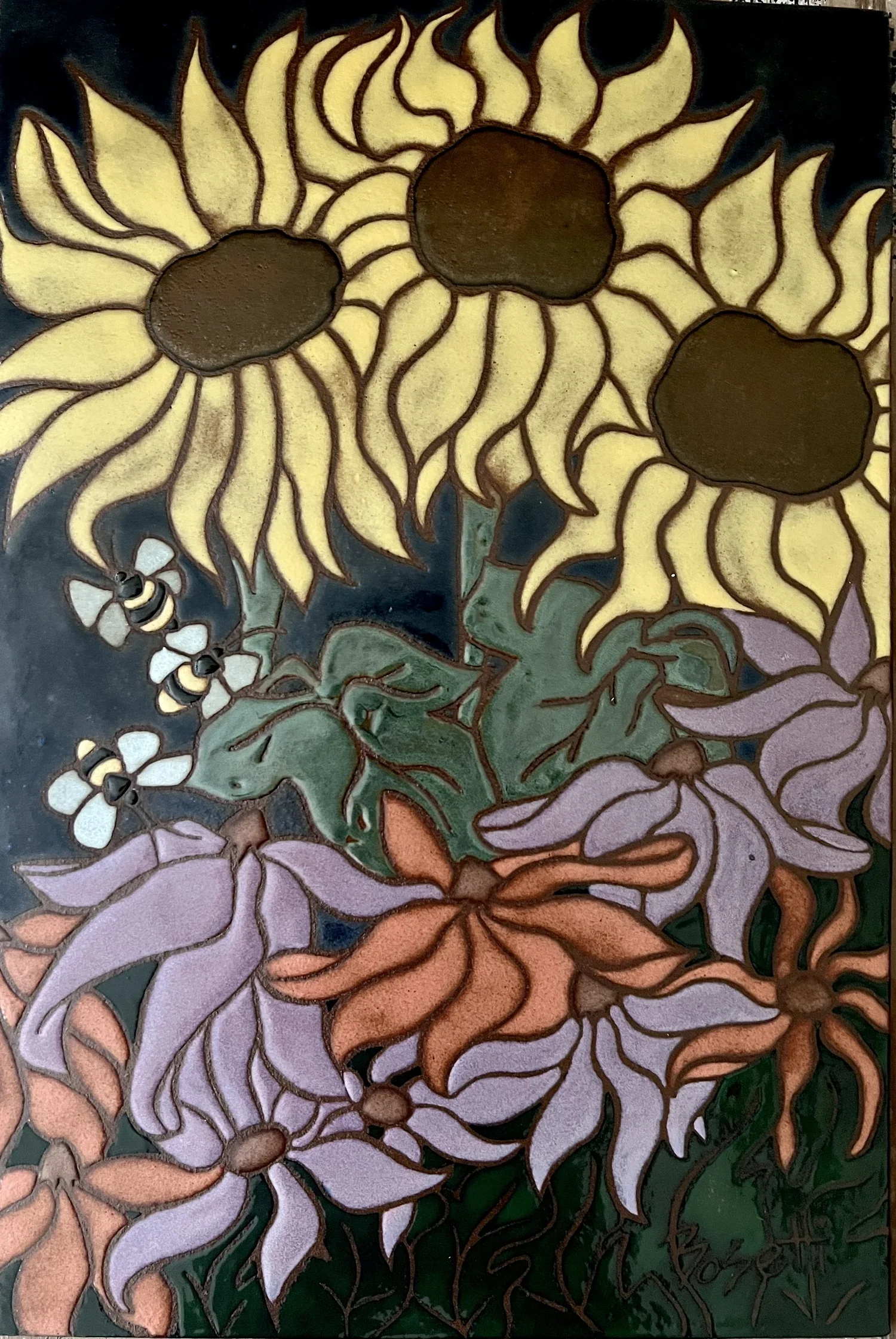 Yellow is my color this season. While searching for new glazes, I came across the most beautiful butterscotch hue. Not only does it fire with a glow, but it also goes brown where the glaze is thin. Similar to how yellow petals age on mums. When I came out of my surgery haze, I noticed my neighbor Anna's garden had bloomed into an abundance of beautiful yellow and purple flowers that visually knocked me over. Her garden made me see yellow differently. Inspiring me to make the color a star this season.