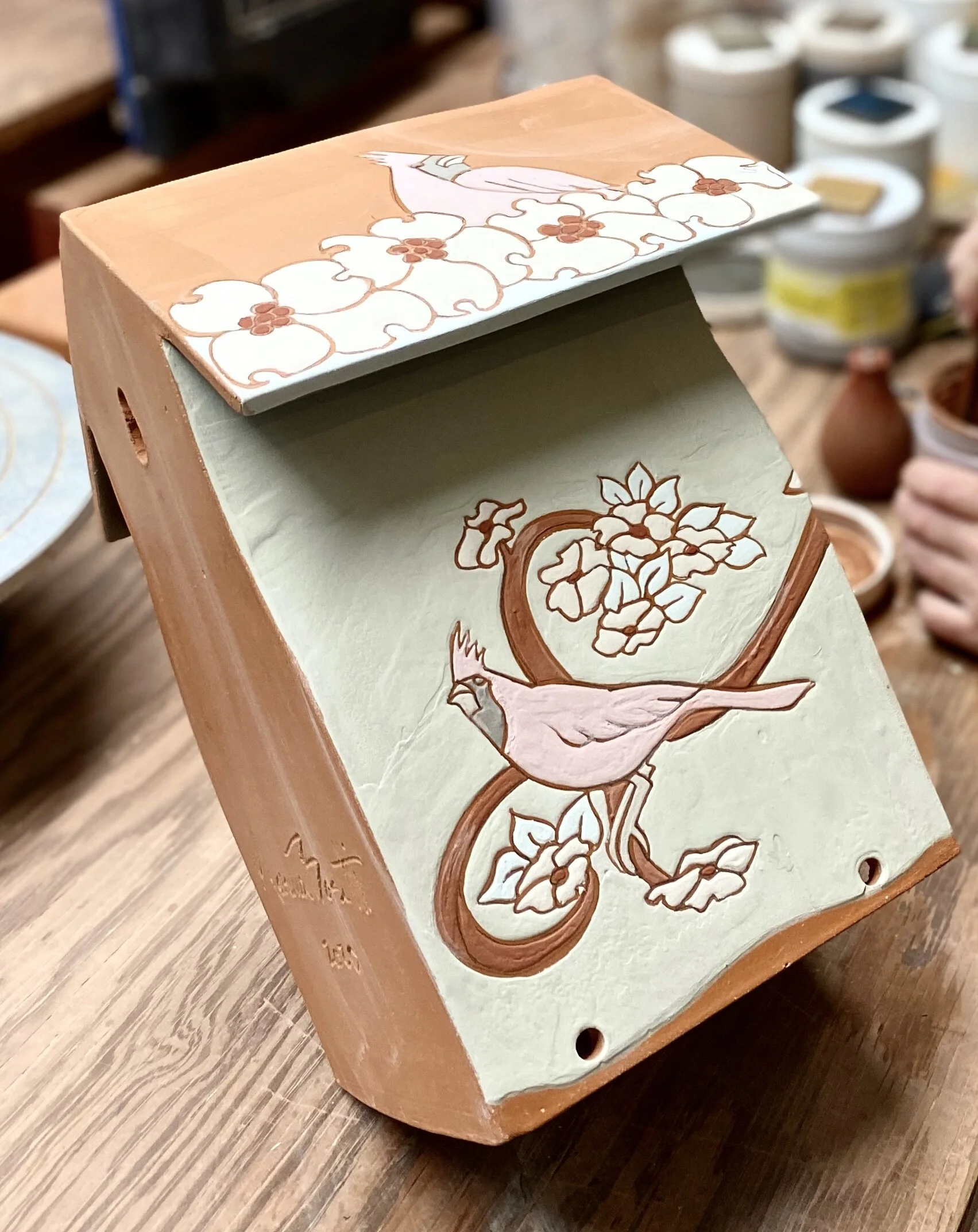 In April, just after the pandemic hit, a customer was diagnosed with bone cancer. Her pelvis cracked, and along with a hospital stay, she could no longer walk her dog. She is big time on the mend now but still can't walk the dog. People in her condo building quickly came together and worked out a schedule of walkers. The timetable is still in use eight months later. While hiring me to make custom pieces for her neighbors, she's not only helping me stay in business but is making them feel special by carefully choosing pieces and colors that will complement their homes as well as delight them. One extra special friend not only walks her dog but brings her small amounts of beautiful fruit or flowers a few times a week. I'm making a birdhouse for him.