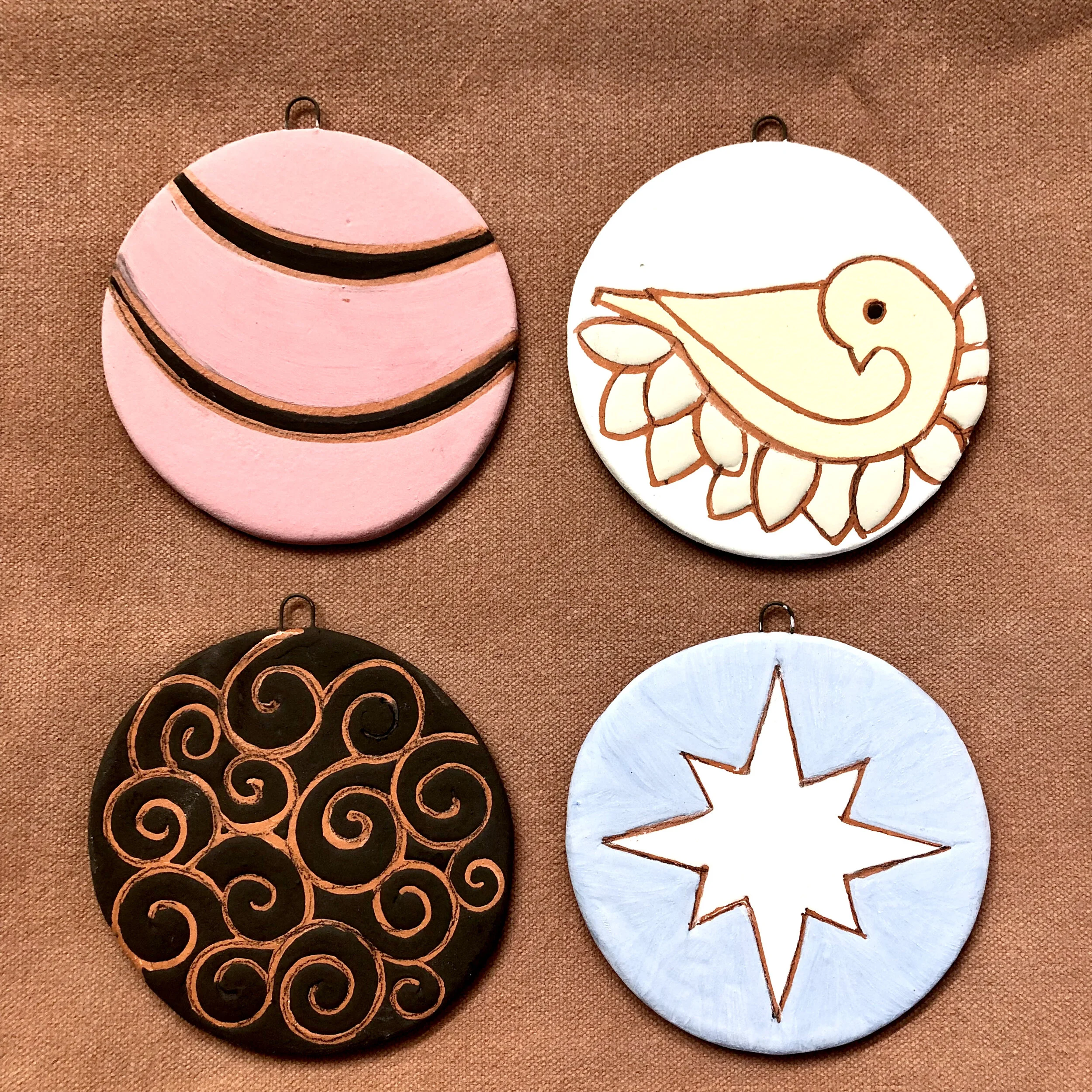 Ornament production is underway at the studio. While I was creating the discs, I started mulling on patterns. I wrote down five ideas, and once I got going, the ideas started flowing. It's rather miraculous the way one idea flows into another, creating inspiration and flow. It's my favorite part of the process.