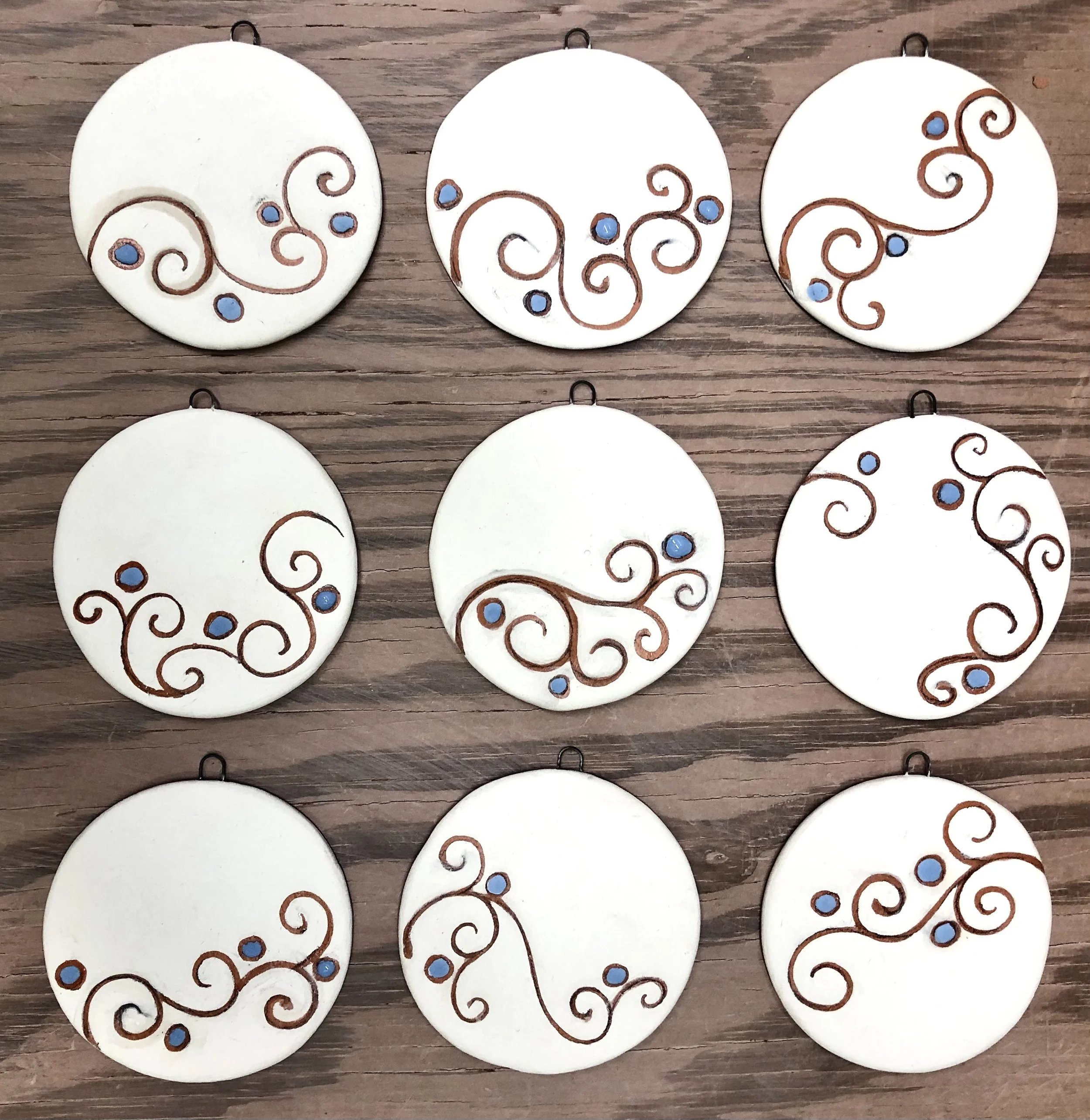 I’ve been creating like mad this month; two hundred ornaments, six birdhouses, two lamp bases, two pedestals, and four coiled vases. I’m going to slow down on the making and ramp up the glazing.