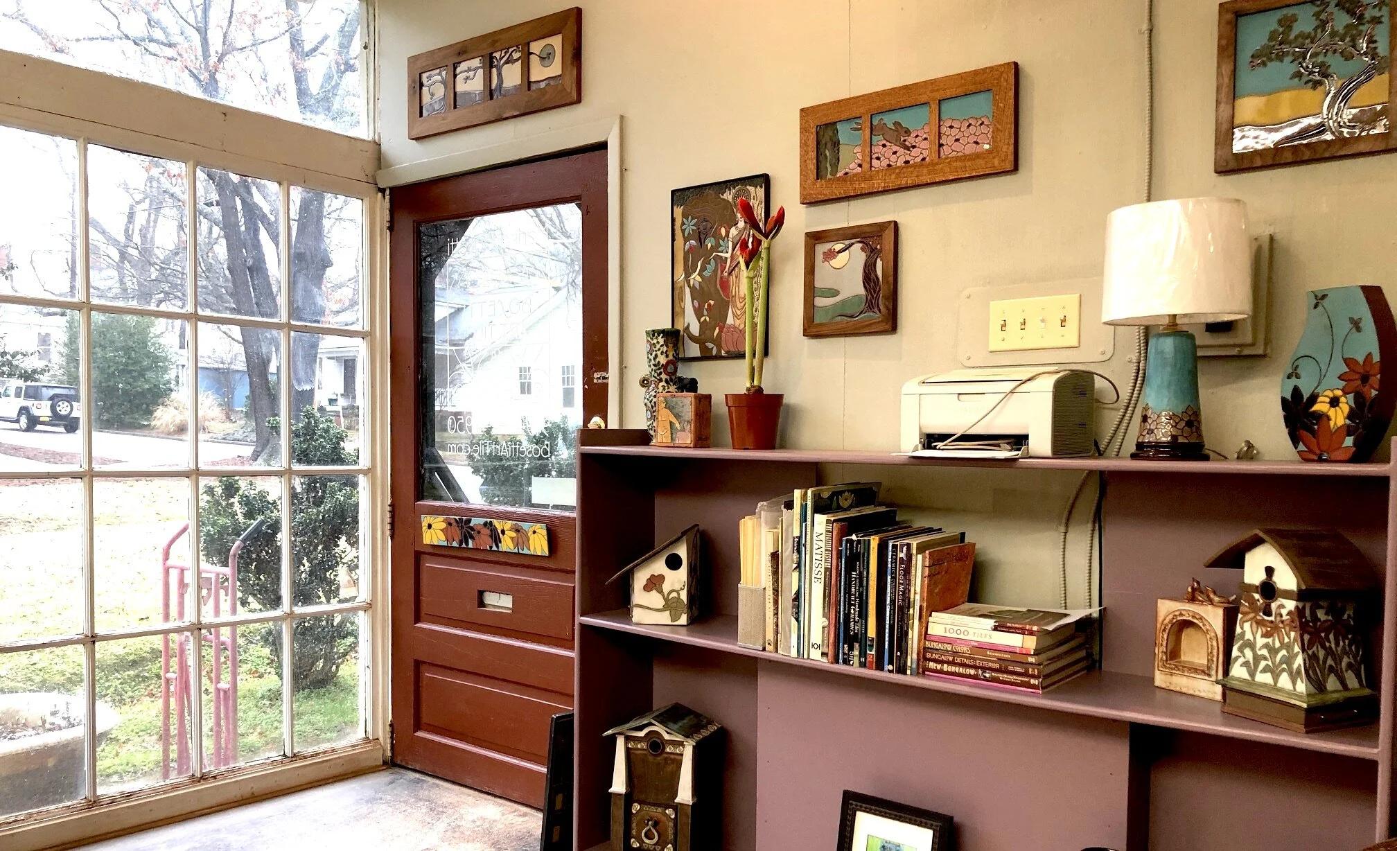 As you enter the studio, your first image is the passion wall. I painted the room a soft green that goes with all the green you see out the windows.