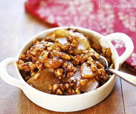 Bake the coated apples until tender, and the walnut topping is golden for about 25-30 minutes.