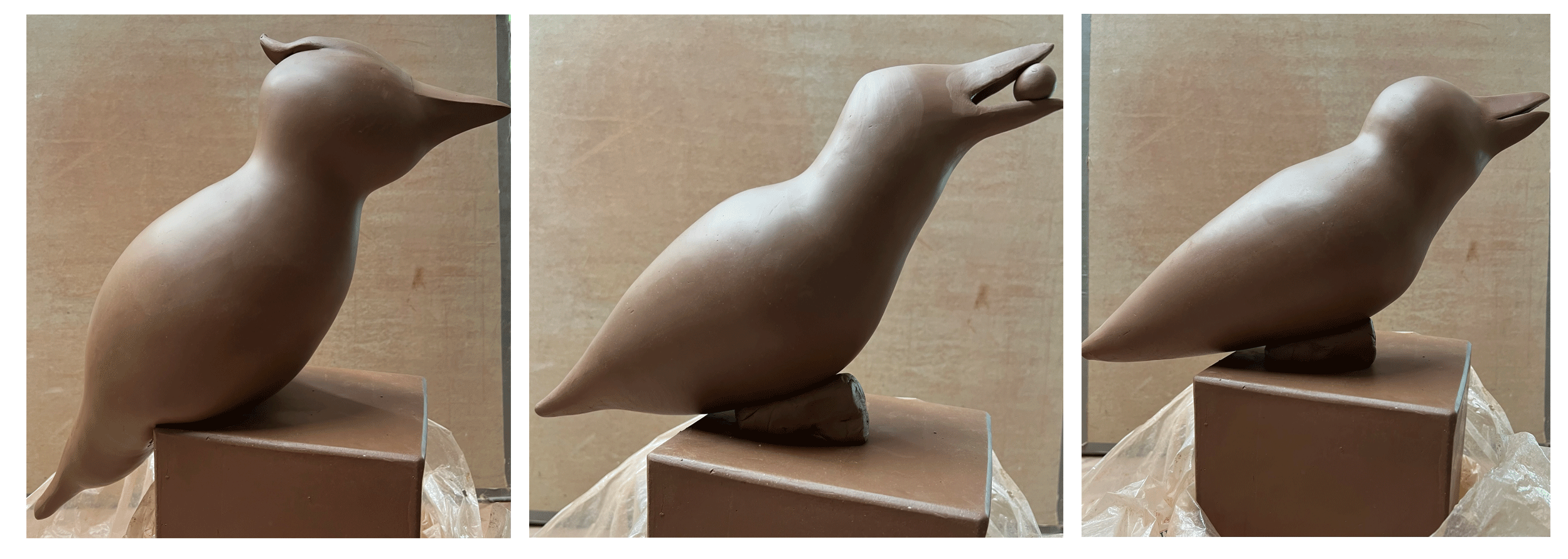 I'm working on a commission involving a bird sculpture as the finial for a tower I'm building. Thinking a week would be enough time to make a few birds, I found it took two. One to explore what shapes to use and how to handle pieces that don't have a flat space. Another to perfect the technique. The arrival of hurricane Ian was also a problem. The air was so humid it took days for the pieces to dry enough to handle. I found success when I threw some cone shapes I could set into bisqued vases while I coiled the heads onto the bodies. And here they are.