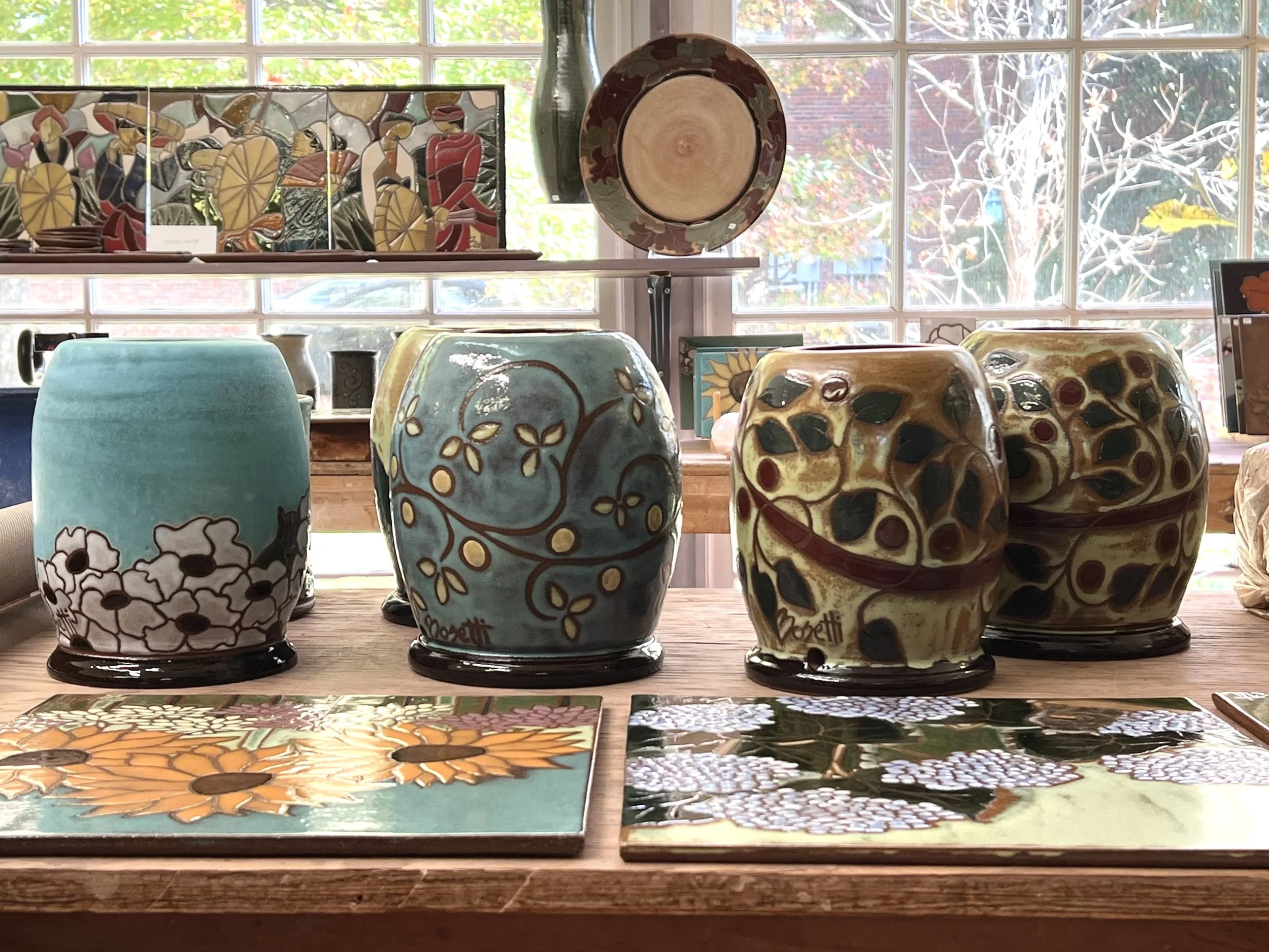 These are the fired tiles from last week. Bright, cheerful, and serene.