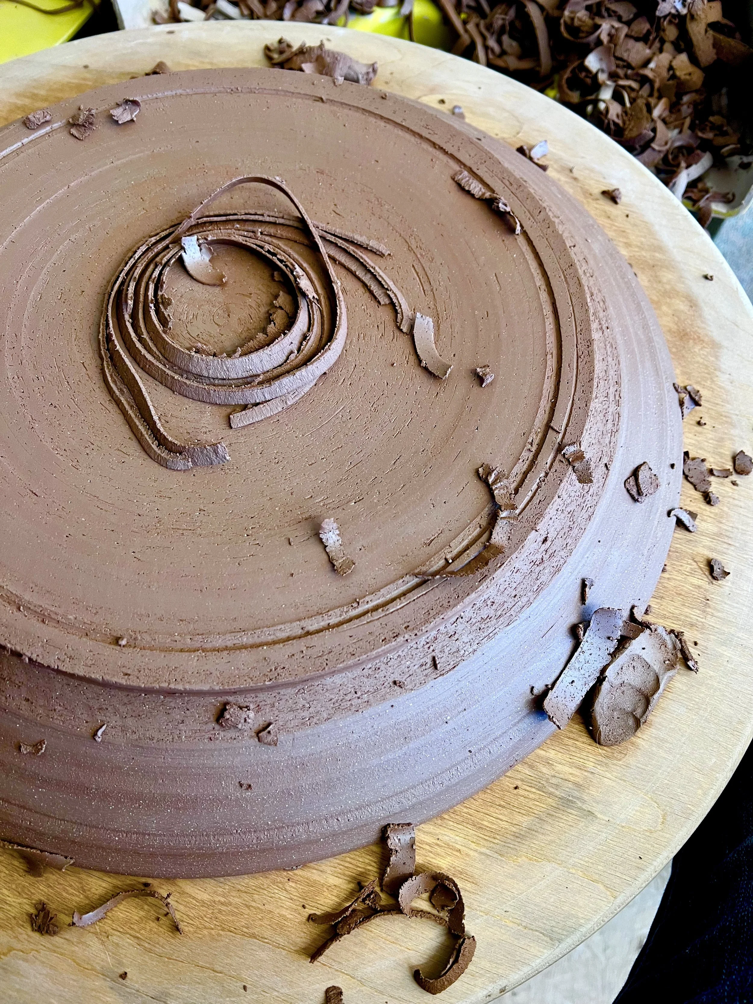 While I'm now comfortable making the platters, I'm still trying to get a feel for trimming. I've trimmed the bottoms out of a few platters, and some I cut off at an awkward angle, making them difficult to trim. I'm sharing my failures with you because it's a part of learning; it's the part that makes succeeding fun.