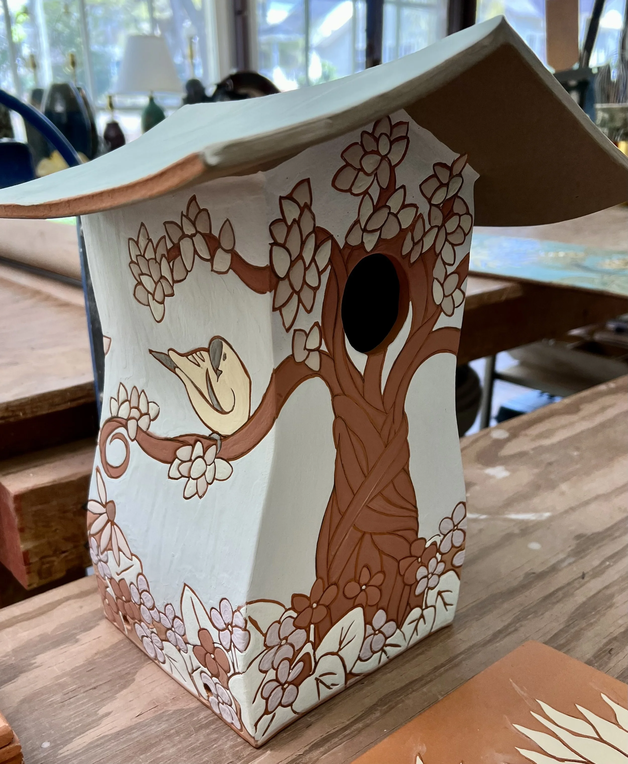 Part of my entry waiting to go into the kiln. You’ll be delighted by the color once the glazes are fired.