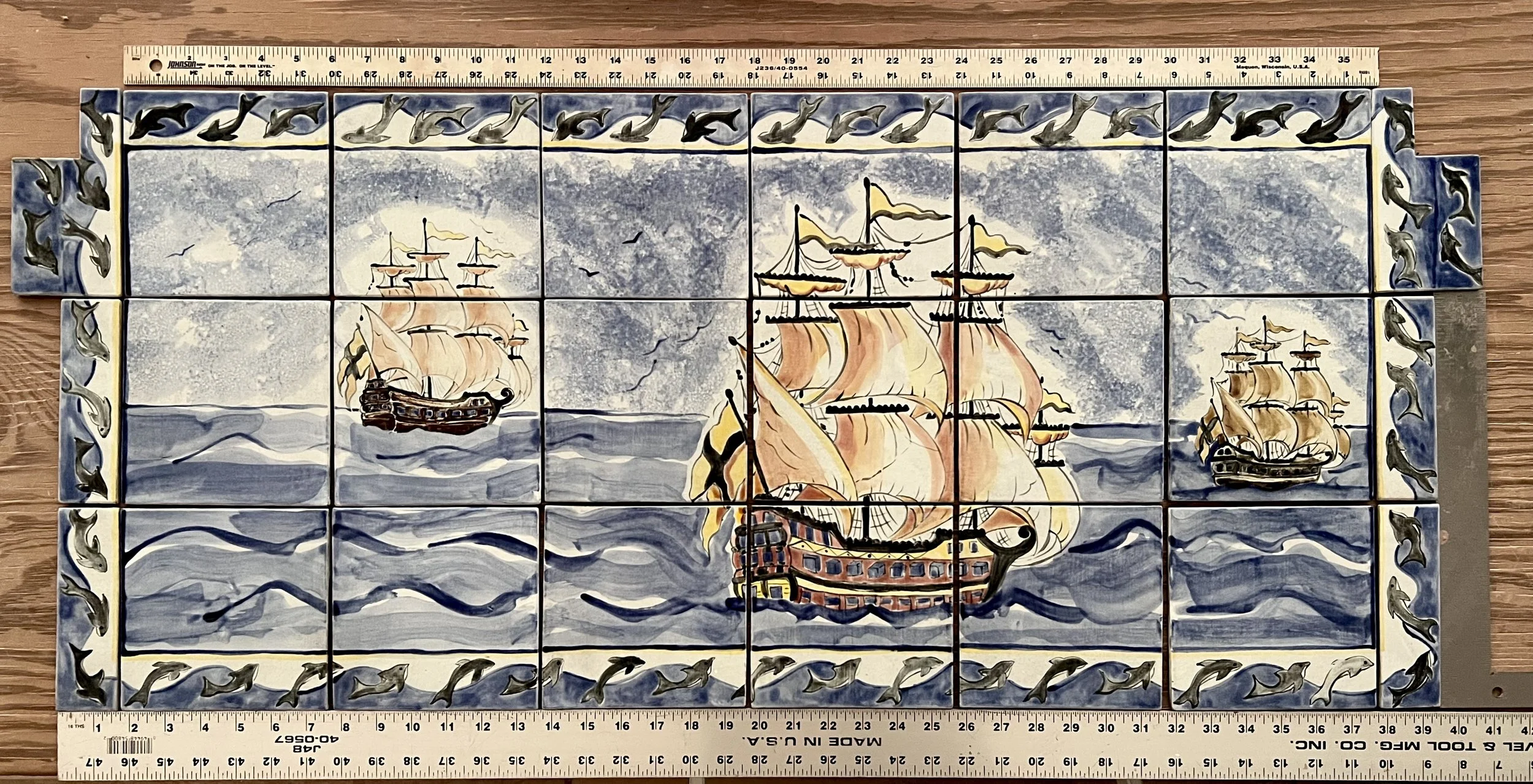 I like to photograph the finished murals with rulers; that way, the customer knows the size is correct. The first step is a bit wider than the two below hence the extra bit of border in the top row. You can see how it works in the next photo.