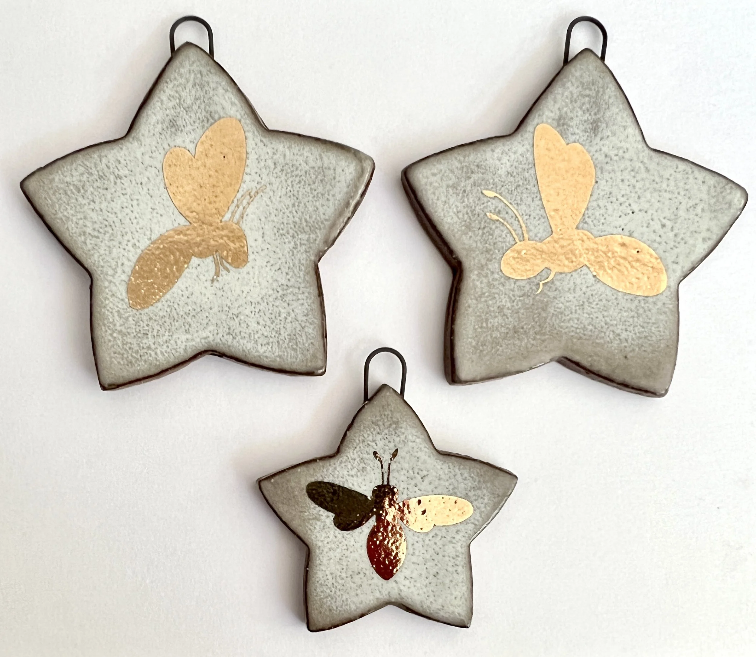It's funny how ideas get stuck in our heads like Christmas trees are green. Christmas trees come in all colors, including pink, which I find hard to imagine at my house, but I've seen it done beautifully at others. I love my bee ornaments but have labored trying to make them Christmasy, as in beautiful on a green Christmas tree. I've now done them with three background colors, and I'm very interested to know your thoughts. Which do you like best, and do I continue to make the bees black and yellow or make them more Christmasy?