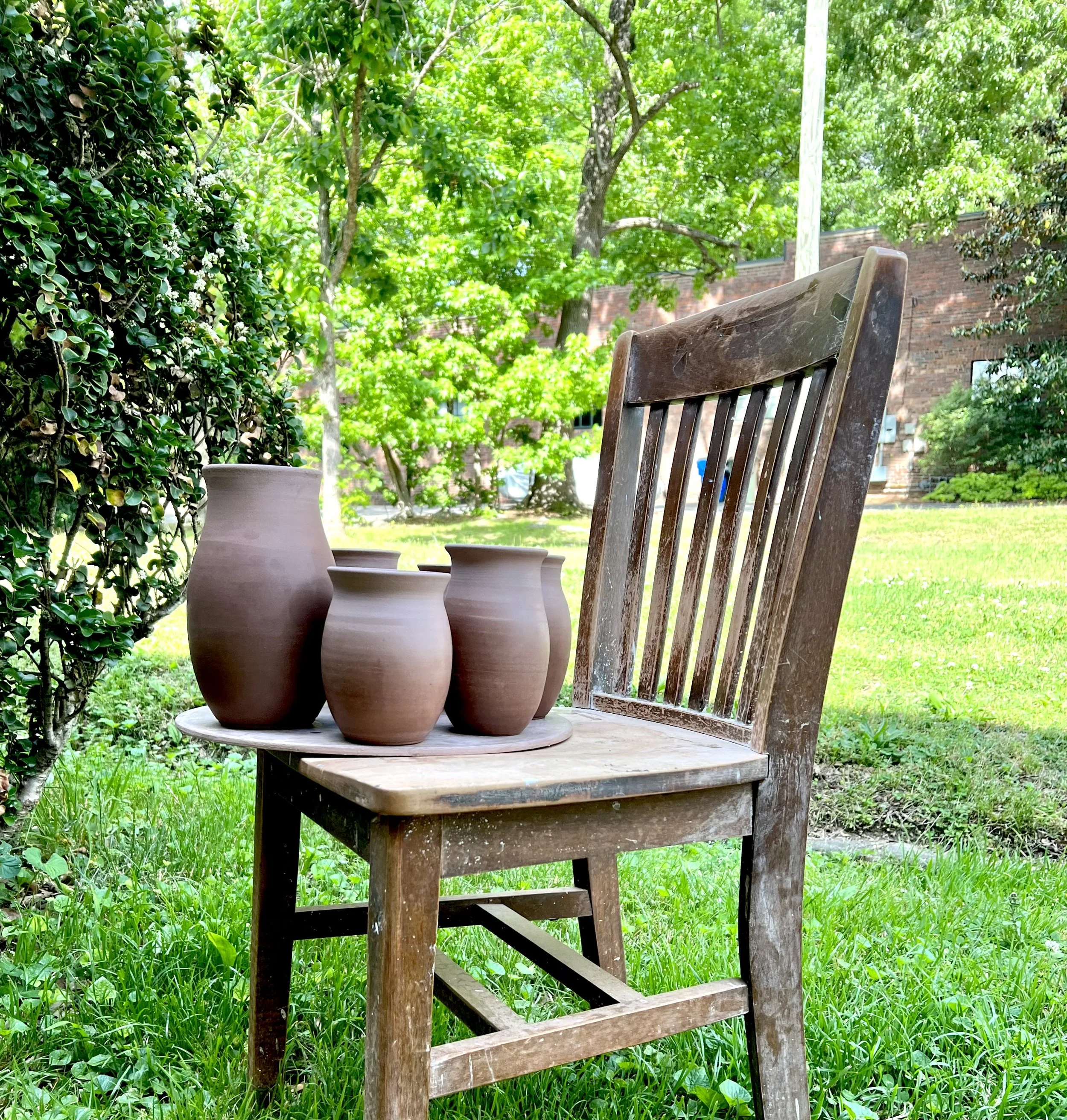 Pots drying in the sun outside the studio.