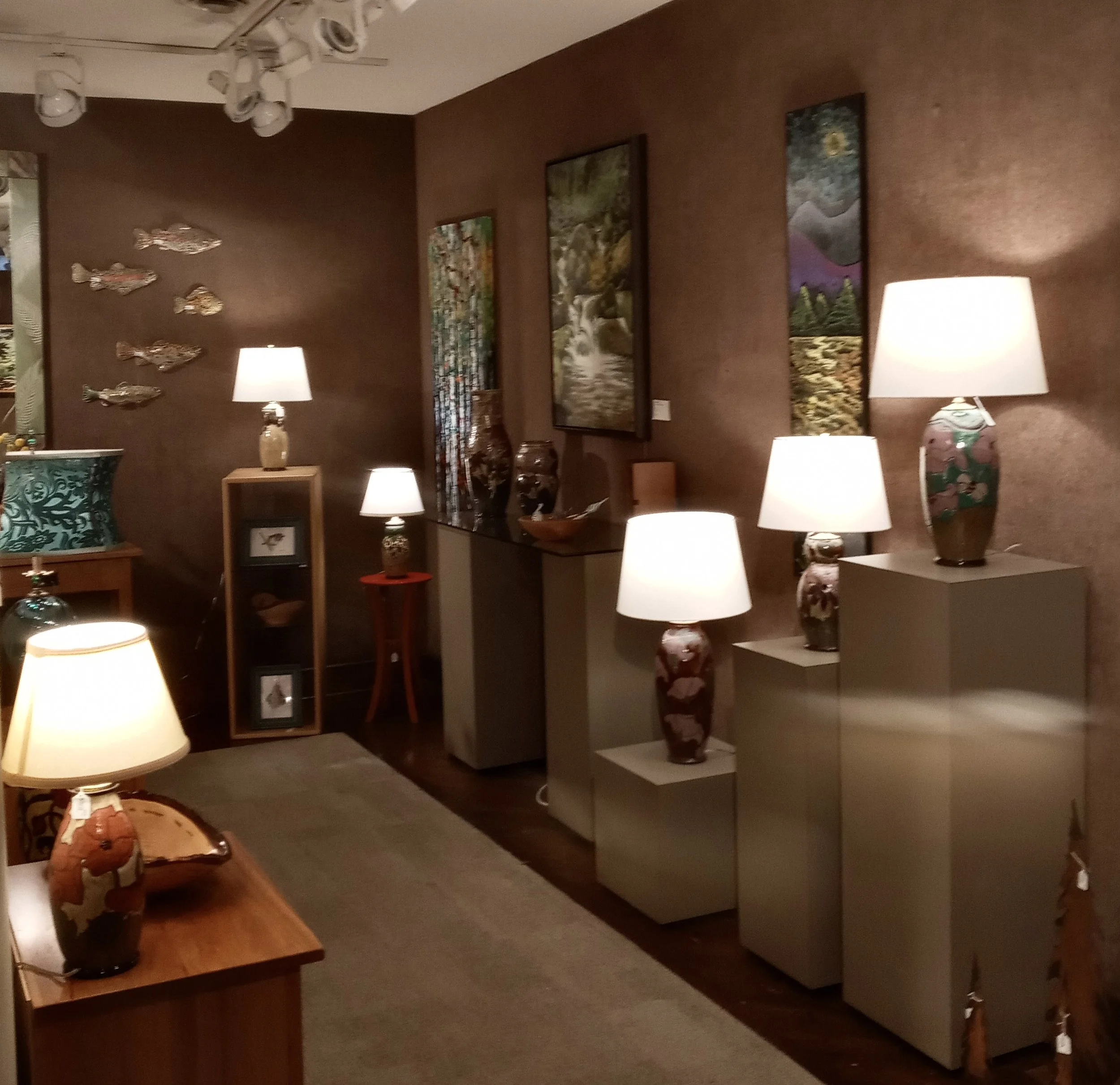New Morning Gallery kindly sent this picture of my table lamps on display. I love the soft glow and soothing mood; lamp light gives a room. As part of my nighttime routine, I like to turn the bed down and turn on the bedside lamp so when I'm ready to sleep, it's like the bedroom is saying, "Welcome."