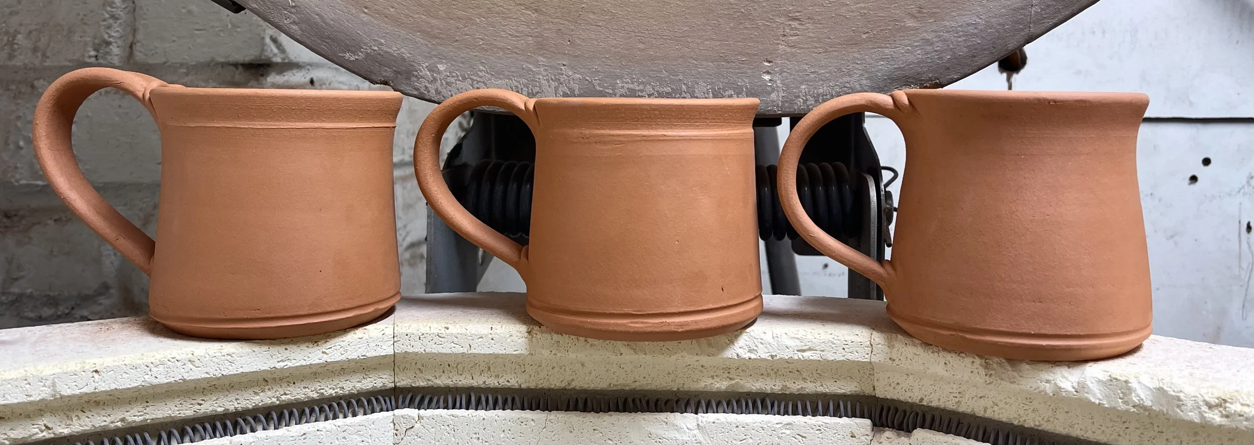 Mugs are at the top of the list. I've made about 30, and I'm having so much fun. They're quick when you're well-practiced and time-consuming when you're not. I'm having fun because I'm watching myself get faster while making better handles. Handles make mugs a misery when you produce them infrequently. A good mug handle doesn't come above the rim. That's so you, the customer, can stack them in your cupboard. I didn't achieve that initially, but now I'm on a roll.