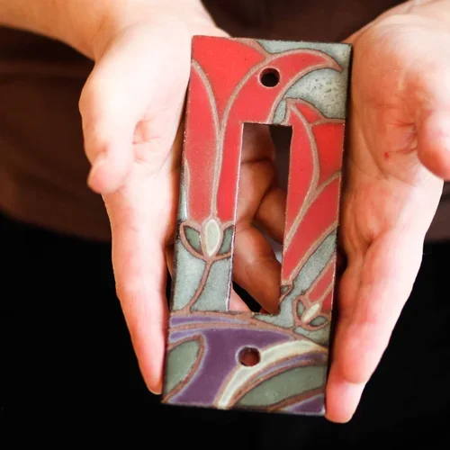 I create ceramic art tiles inspired by the vibrant flora and fauna I see around me, filtered through memories of a childhood filled with music—the violin always playing. My brother is a concert violinist, and that lyrical rhythm brings a sense of motion and joy to my work. My imagery is intentionally happy, when you see it, I want you to smile, breathe, feel celebrated, and connect with the beauty that surrounds you.